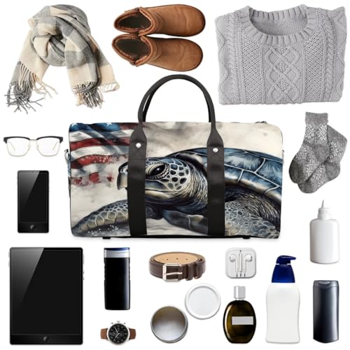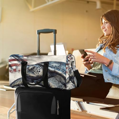 Sea Turtle Stars Stripes Foldable Lightweight Duffle Bag for Travel - Waterproof Carry On Bags for Airplanes, Travel Duffel Bags for Gym, Weekend