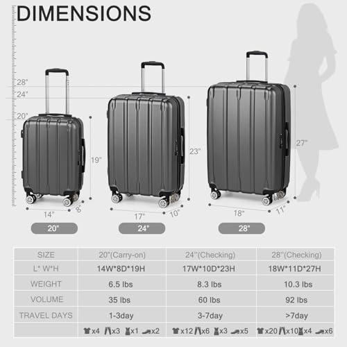 • [ 3-Piece Luggage Set ] Includes 20", 24", and 28" sizes, providing the flawless options for any trip—whether it's a weekend getaway or an extended vacation.