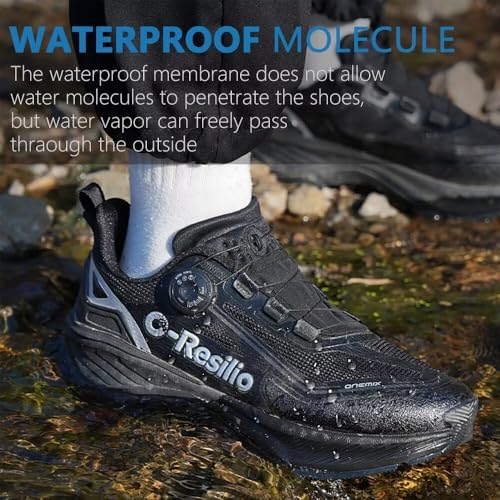 • ONEMIX Advanced Waterproofing technology: provides long-lasting water resistance and optimized air permeability.The waterproof membrane does not allow water molecules to penetrate the shoes,but water vapor can freely pass through the outside,which helps to keep your feet dry,especially suitable for outdoor sports such as mountaineering,hiking,cross-country,etc.,ensuring your high performance on complex terrain.