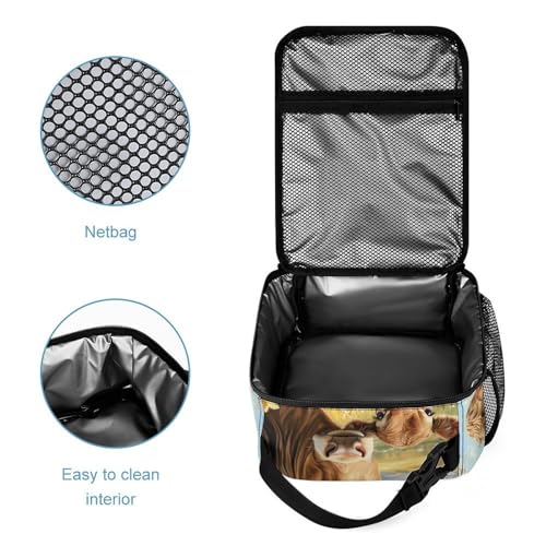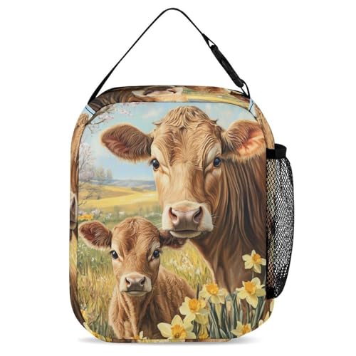Cow Mama And Little 3 PCS Backpack Set Casual Daypack with Insulated Lunch Bag & Pencil Case