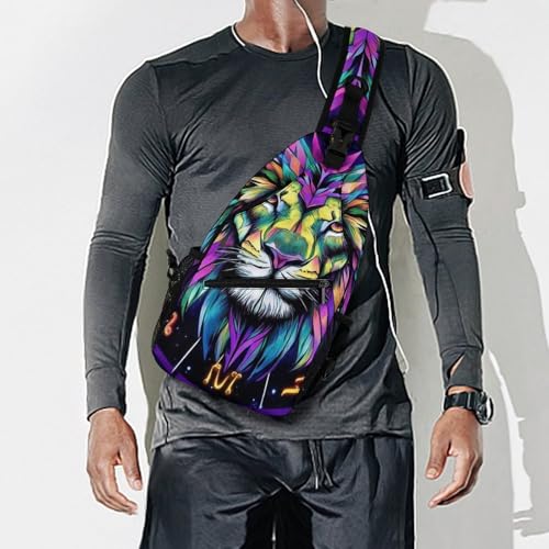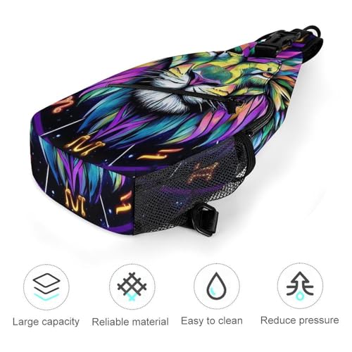 Men's Small Day Pack, Cross Body Sling Bag, Travel Hiking Fashion Chest Bag Trippy Lion Leo Constellation Art