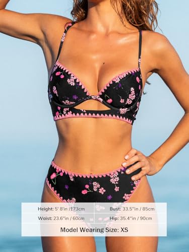CUPSHE Women's Bikini Sets High Waisted Two Piece Swimsuit W Wire Underwire Push Up Bathing Suit Cutout Back Lace Up