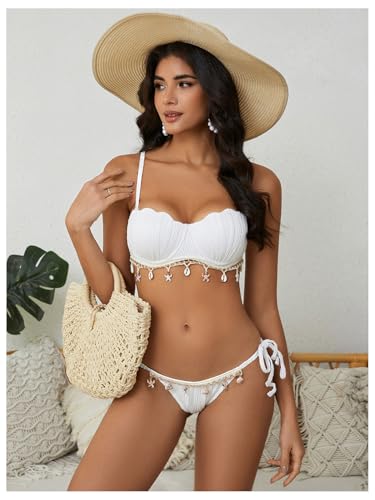Why Choose MakeMeChic Women's Bikini Set Textured Scallop Trim Shell Tie Back Bathing Suits?