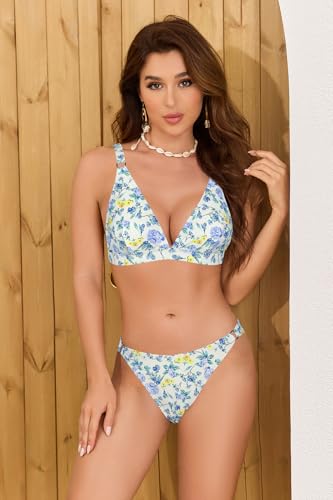 Women's Triangle String Floral Print Swimsuit Low Waisted High Cut Two Piece Bikini Sets Bathing Suit 2
