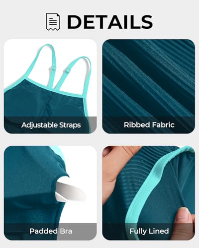 • Teal and Green One Piece swimsuits: This athletic swimsuit comes with adjustable shoulder straps and removable padding bra, making it highly cozy to wear.