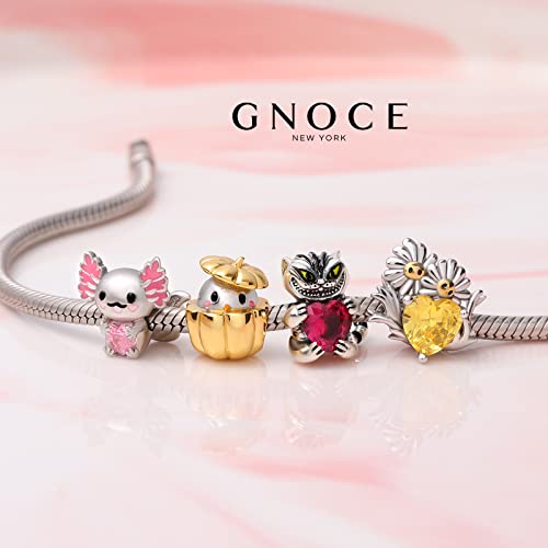 popular ! GNOCE Cheshire Cat Heart Gemstone Charm Bead Sterling Silver Christmas Charm Fits Bracelets/Necklace For Women/Wife Gift
