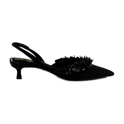 • Introducing Trent - a pointed-toe menswear-inspired slingback. This pair stands out with a floral eyelash-trim and mini kitten heel. The Trent is eye catching, sophisticated and sure to elevate your next blazer x jeans fit.