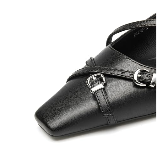 LEMUTISME Women's trendy Matte Leather Square Toe Buckled Dressy Low Kitten Heel Chic Strappy Slingback Pumps Shoes