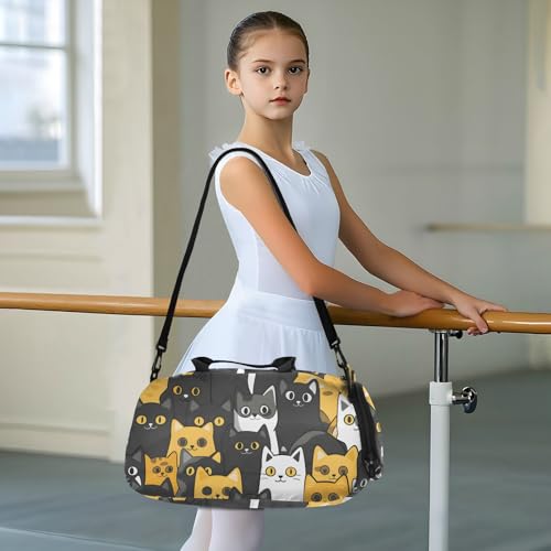 Duffle Bag Kids Gym Bag with Shoes Compartment & Wet Separation Overnight Travel Duffel Bag Yellow Black White Cat for Girl Boy 4