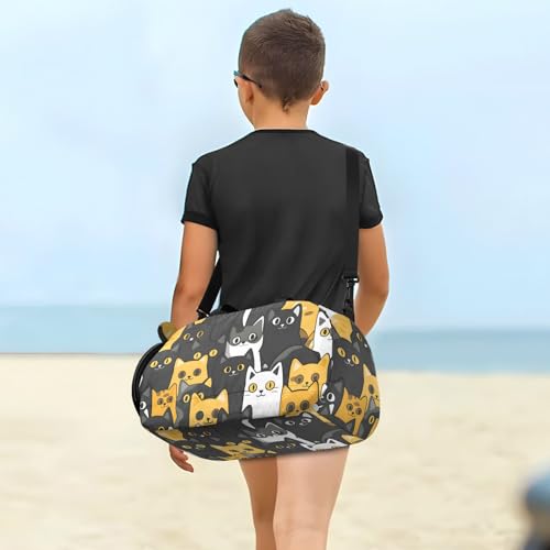 Duffle Bag Kids Gym Bag with Shoes Compartment & Wet Separation Overnight Travel Duffel Bag Yellow Black White Cat for Girl Boy 7