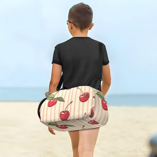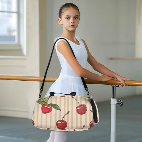Duffle Bag Kids Gym Bag with Shoes Compartment & Wet Separation Overnight Travel Duffel Bag Striped Cherries for Girl Boy 4