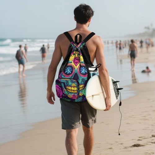 More information about Mesh Gym Swimming Bags for Men & Women, Sugar Skull Rose Diamond Large Drawstring Backpack with Dry-Wet Pocket, Lightweight Gym Bag for Sports, Travel, Beach, Workout Gear
