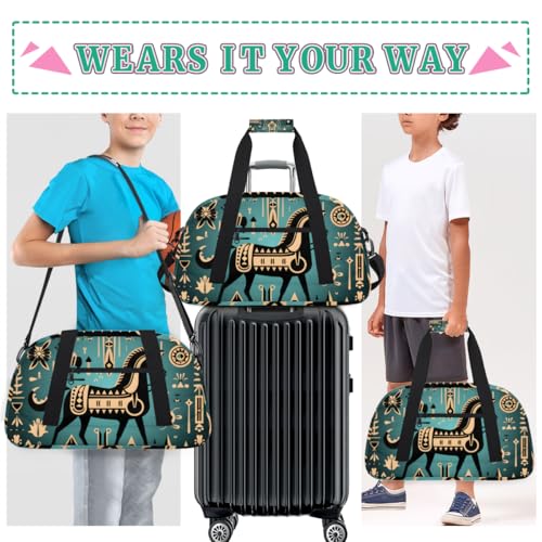 Ancient Egyptian Style Horse Gym Travel Duffle Bag for Boys - Gymnastics Sports Dance Bag with Front Zipper Pocket for School Practice or Overnight Travel Weekender Sleepover Tote Bag Horse Print 3