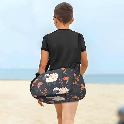 Duffle Bag Kids Gym Bag with Shoes Compartment & Wet Separation Overnight Travel Duffel Bag Sheep Flower for Girl Boy 6