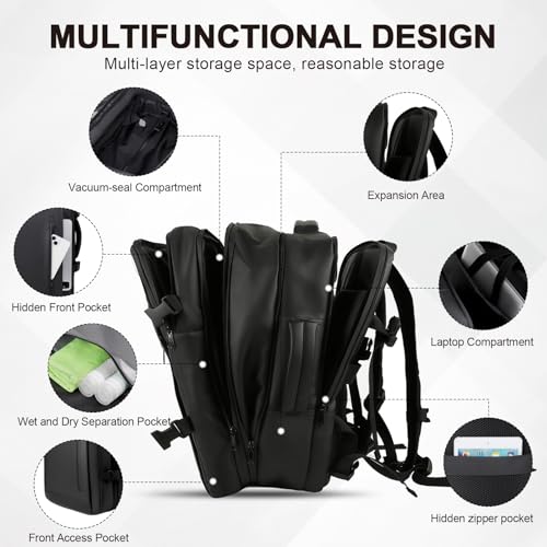 • 【Carry-On Size & Expandable Design】The daily size of vacuum travel backpack is 17.7 x 11.8 x 7.9 inch, the depth can be expanded to 11inch, which remains a CARRY-ON size to ensures hassle-on the house airline boarding and eliminates extra baggage fees. TSA approved combination lock keeps your belongings safe and secure