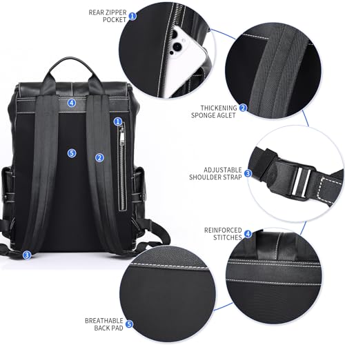 Nappa Genuine Leather Backpack for Men Multi-Functional 15" Laptop Backpack, Black Business Casual Travel Backpack Work Daypack 5