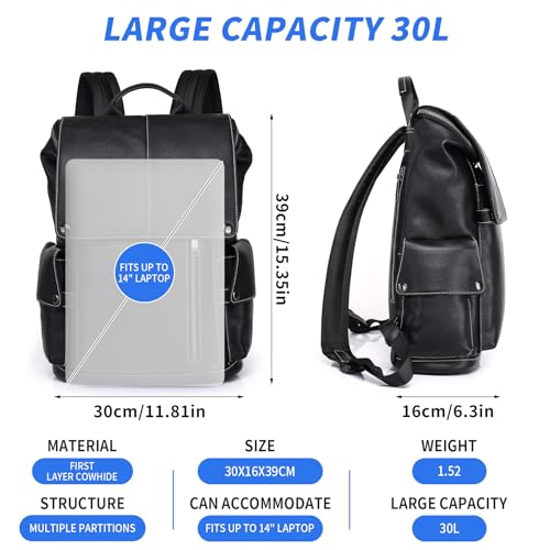 • 【Large Capacity and Organized】Dimensions D6" W13" H16" (15 cm 34 cm 41 cm), and weight 3.1 lbs (1.42 kg).The genuine leather backpack holds tremendously laptops less than 14 Inches. Large main compartment roomy for daily necessities, such as A4 folders, magazines, tablet, chargers, power bank and clothes.
