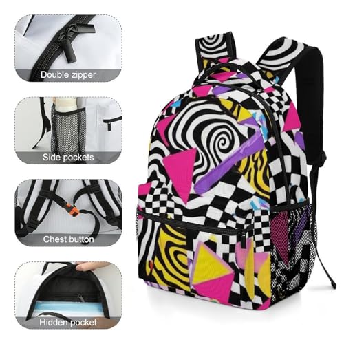 Fashion Computer Bag, Durable Travel Laptop Backpack, Water Resistant College Bag For Women Men Black And White Checkered Retro 80s 90s 2