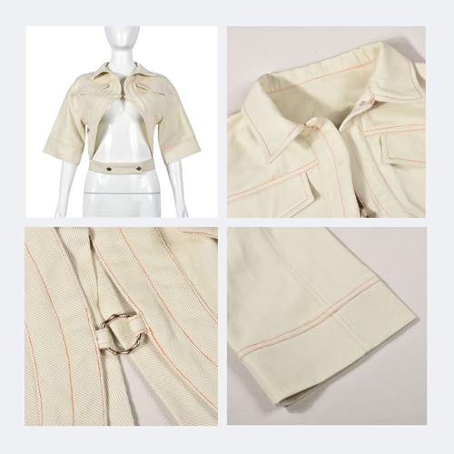 More information about Casual Cropped Jacket Women Fall Fashion Short Sleeve Lace-up Coat Trendy Hollow Out Women's Clothes