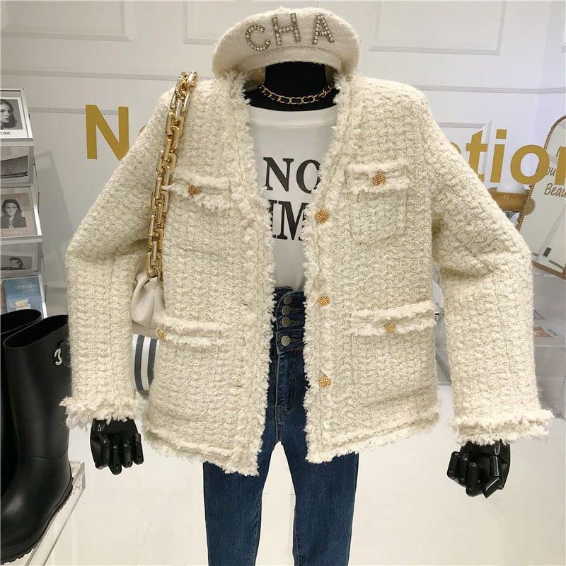 popular ! CHONG FENG XIA Tweed fleece Padded Suit Jacket - Women's snug V-Neck Loose Blazers