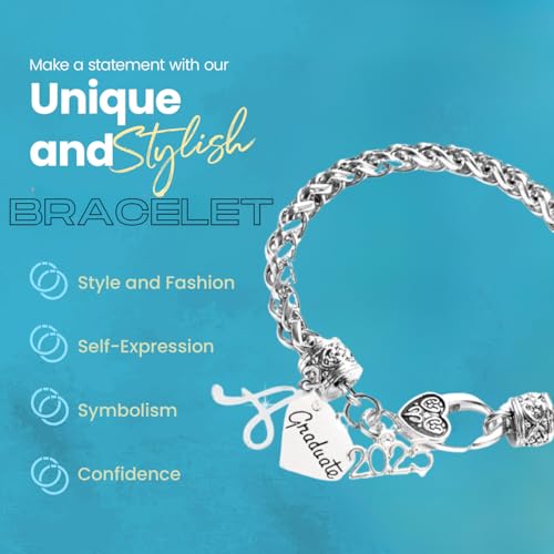 • Graduation Bracelet: Adorned with 2025 graduation charms, just waiting to adorn your wrists and celebrate achievements. With a plush 7.5-inch length and a lobster clasp, it's designed to fit remarkably wrists.