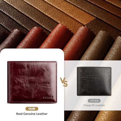 popular ! VULKIT Bifold Wallet Genuine Leather For Men Slim Minimalist Front Pocket RFID Blocking Card Wallet Wine