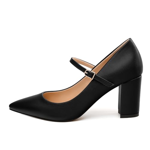 More information about WAYDERNS Closed Pointed Toe Heels for Women Chunky Block High Heel Pumps Fashion Elegant Trendy Prom Party Wedding Dress Shoes with Strap 3 Inch