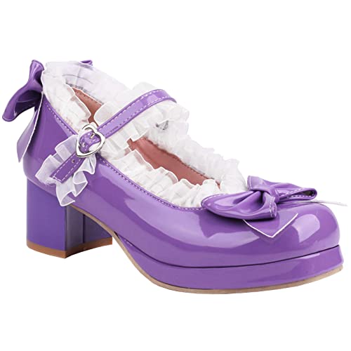 More information about LUXMAX Women Bow Mary Janes Patent Leather Platform Sweet Lace Pumps Chunky Mid Heel Cute Shoes