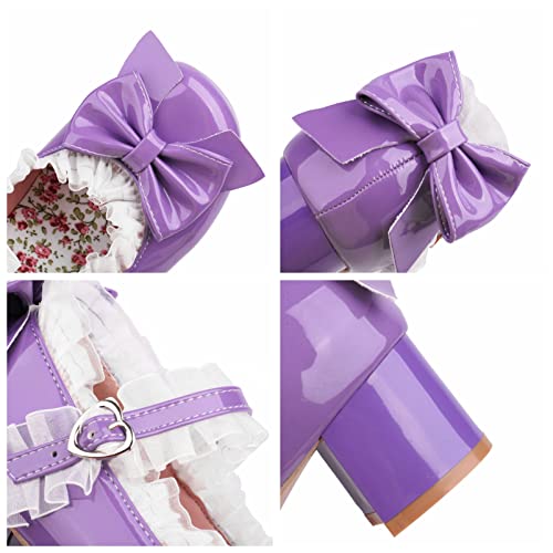 LUXMAX Women Bow Mary Janes Patent Leather Platform Sweet Lace Pumps Chunky Mid Heel Cute Shoes 5