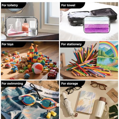 • TSA Approved & Travel-Ready: This 12-piece set includes 6 large (7.8 x 5.9 x 2.3") and 6 medium (6.3 x 5.2 x 1.6") quart-size clear toiletry bags, fully compliant with TSA 3-1-1 liquids rules. Streamline airport security checks with confidence, ensuring hassle-gratis travel for all your cosmetic and toiletry essentials.