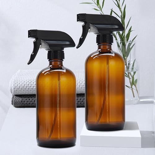 popular ! 2 Pack Empty 16oz Amber Glass Spray Bottles Refillable Spray Bottle for Cleaning Solutions, Essential Oil, Water, Kitchen, Hair, Plant, Pets