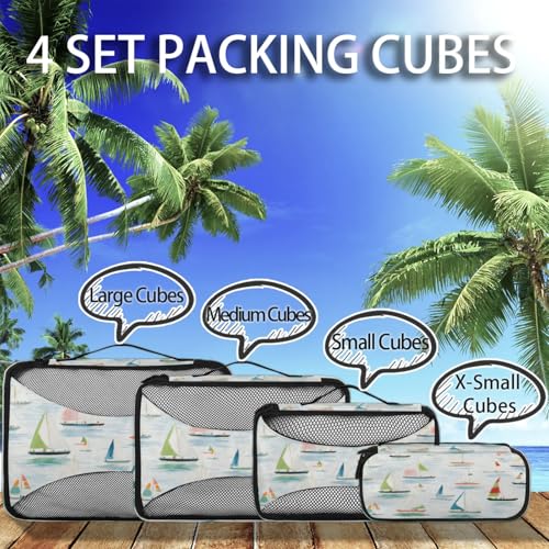 4 Set Packing Cubes for Travel, Nautical Sailboat Packing Cubes for Women, Travel Luggage Packing Organizers, Packing Cube Set, Cartoon Sailboat 4