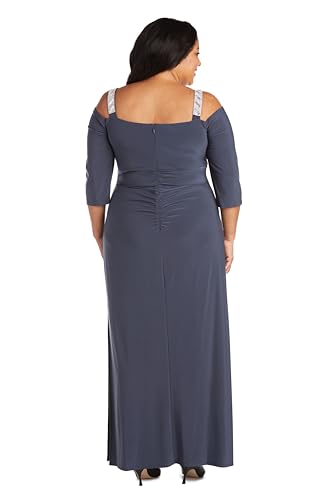 R&M Richards Womens Rhinestone Ruched Evening Dress