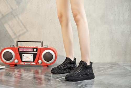 Sole material: RubberOuter material: Faux LeatherClosure type: Lace-UpWater resistance level: Not Water Resistant【SIZE SELECTION】: PLEASE REFER TO THE SIZE DATA IN THE PICTURE TO CHOOSE THE APPROPRIATE SIZE. THANK YOUDESIGN: Stylish high top sneakers with shiny rhinestones on the upper, gorgeous colors make people's eyes shine, lace-up design, easy to put on and take off.COMFORT: Rhinestone high top sneakers with molded rubber outsole, non-slip and wear-resistant, soft footbed makes you comfortable to wear all day.MATCHING: Glitter sneakers with colorful colors can match your closet perfectly, perfect for pairing with jeans, leggings, shorts, skirts and dresses, let you party and shine on your date.Applicable occasions: these rhinestone high top boots are suitable for your daily wear, such as weddings, gatherings, clubs, parties, going to school, shopping malls, beach walks, shopping, going out with friends and so on. Perfect for everyday use. High quality materials and excellent craftsmanship ensure long-lasting durability.