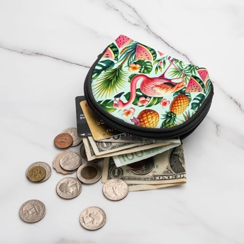 Portable Coin Purse Flamingo-Palm-Leaves-Pineapple Mini Zippered Money Pouch Card Holder 6