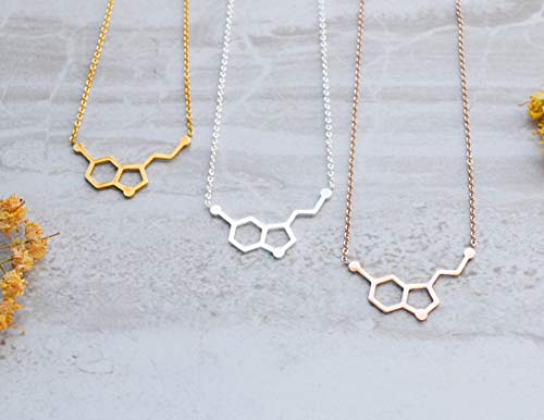 Altitude Boutique easy Happiness Serotonin Molecule Necklace, Serotonin Neurotransmitter Necklace, Science Jewelry for Science Lovers (Silver, Gold, Rose Gold)