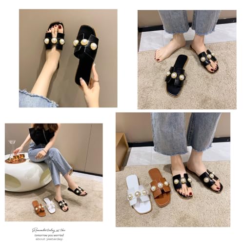 popular ! Women's White Flat Sandals with Pearl Open Toe Non-Slip Slippers Fashion Slides for Summer