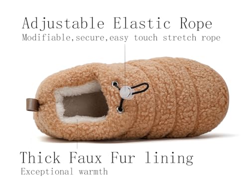 Sole material: Thermoplastic RubbersCLOSED-BACK STYLE SLIPPERS WITH ADJUSTABLE ELASTIC ROPE DESIGN: Perfectly wrap your entire foot from heel to toe, without worrying about them falling off your feet. Adjustable, secure, easy touch stretch rope adjusts to fit ankles.gentle CURLY FLEECE UPPER & FAUX FUR INSIDE: The exterior's soft, curly teddy fleece is complemented by a thick Faux Fur lining that provides exceptional warmth, ensuring your feet stay snug and cozy even in the coldest weather.RECYCLABLE & ANTI-SLIP TPR SOLES: Provide quiet, effortless indoor steps and reliable traction for outdoor tasks like mail collection. These recyclable, environmentally friendly soles also offer excellent slip resistance, ensuring your safety on various surfaces.MEMORY FOAM FOR RELAXED STEPS & FOOT STRESS RELIEF: High-density memory foam cushions your every step will make your feet feel relaxed and relieve your foot stress from all-day walking or standing.SUITABLE FOR All OCCASIONS: Whether it's a pajamas party or family gathering, you can match these slides with any outfit for an effortless look, they are also a perfect gift choice for your friends and family members. Perfect for everyday use. top-grade materials and excellent craftsmanship ensure long-lasting durability.