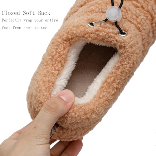 ChayChax Women Men Fuzzy Curly Loafer Slippers Memory Foam Adjustable Closed Back House Shoes with Fleece Lining for Indoor Outdoor
