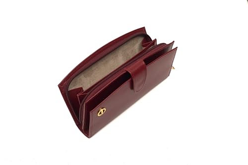 Brand: Jafferjee & Co.Color: RedMaterial: LeatherStyle: ClassicPattern: DurhamOur real leather wallets for women are Crafted with premium genuine calfskin leather, offering a smooth texture, lasting durability, and manufactured in accordance with international and EU quality and sustainability standardsThis sleek womens genuine leather wallet (7.5 x 1.5 x 4) blends style and practicality with a metal button accent. It features 8 card slots, two outside zipper cash compartments, three receipt pockets, 1 id window and a zipper pocket for coins, offering organized storage for work or travel essentialsImagine yourself carrying this Lightweight women leather wallets, crafted from fine full-grain leather. Its clean stitching and soft finish gradually deepen into a rich patina, adding character and timeless sophistication with every useThis leather wallet women blends exceptional craftsmanship with a slim, practical design. With its rich color, classy look, and premium feel, it fits easily in most purses, offering long-term reliability without sacrificing style or everyday convenienceStylish and versatile, this slim leather ladies wallets is an ideal Present for special occasions like birthdays, anniversaries, Christmas, or Mother’s Day. Its timeless elegance makes it a must-have accessory for every woman’s wardrobe, perfect for elevating her style Perfect for everyday use. finest materials and excellent craftsmanship ensure long-lasting durability.