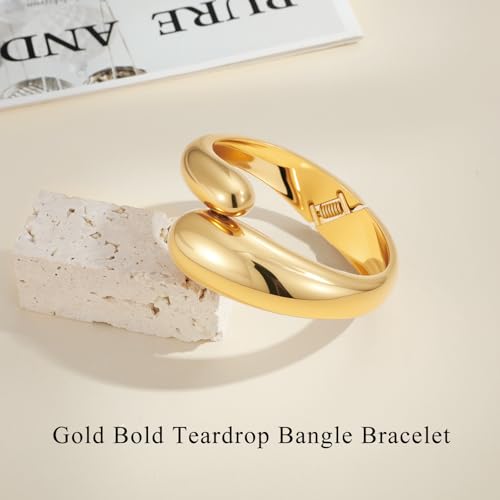 Yowivon Gold Bangles Bracelet for Women, Irregular Chunky Gold Bracelet Teardrop Wave Twisted Hinged Open Bangle Bracelets, Non Tarnish 18K Gold Plated Thick Cuff Bracelets Trendy Jewelry Gifts 2