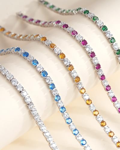 18K White Gold Plated Birthstone Tennis Bracelet for Women, Hypoallergenic 925 Sterling Silver with 5A Cubic Zirconia, Dainty Jewelry Anniversary Birthday Gifts for Her 5