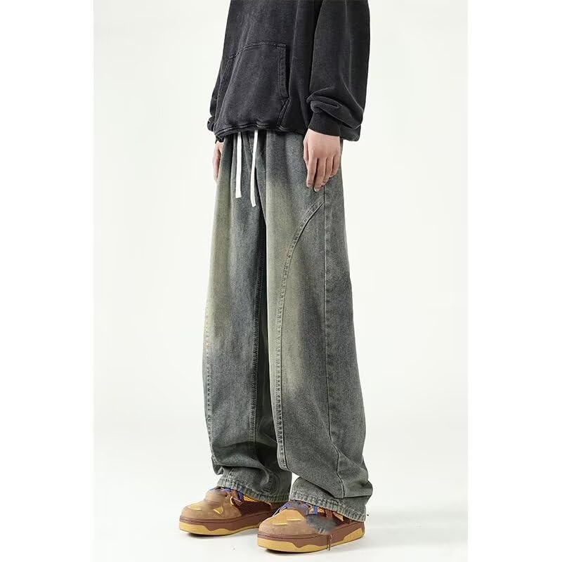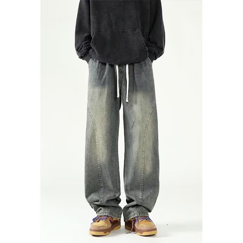 popular ! Men's American Retro Denim Summer Thin Straight-Leg Loose Wide-Leg Casual Long Pants