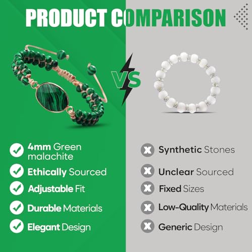 "SS Boutique" Green Malachite Healing Bracelet, Handmade Braided Gemstone Bangle for Meditation, Energy, Spiritual Protection & Mental Balance - 1pc Yoga Bracelet with Premium Gift Box 4