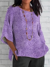 More information about Women's Shirt Floral 3D Daily Casual 3/4 Length Sleeve Crew Neck Regular Tops Daily Holiday Print Purple Summer Spring Fall