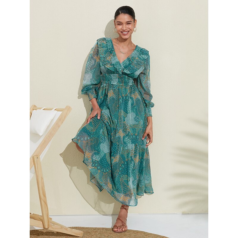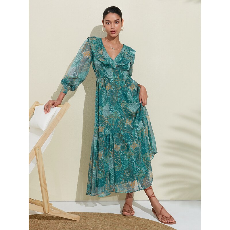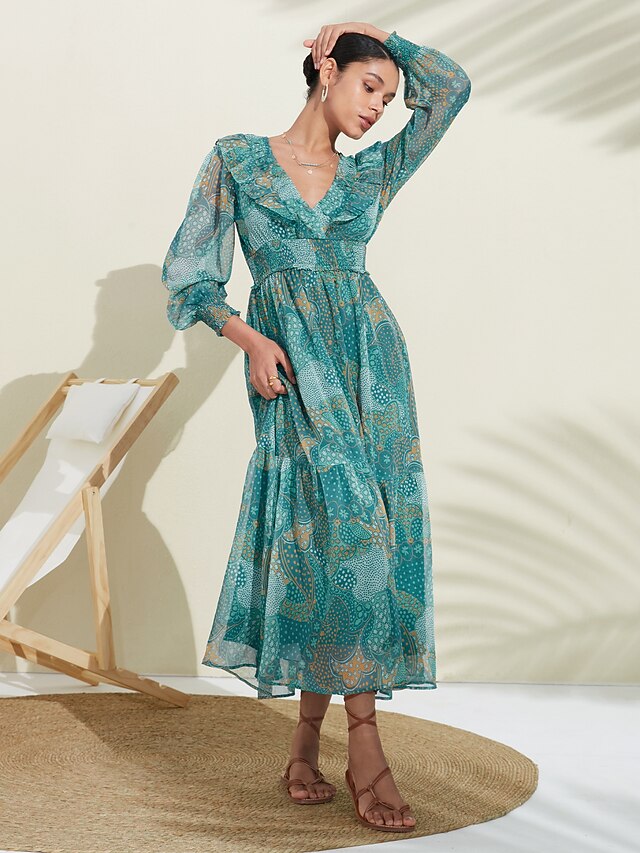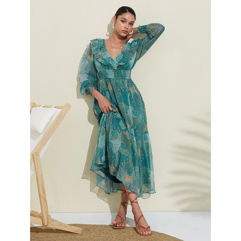 Why Choose Women's Green Long Sleeve Lines / Waves Round Dots Polka dot print V Neck Puff Sleeve Elastic Waist Spring & Summer Spring and Summer Vacation Dress Elegant Dress Flying Dress Vacation Date Beach S M?