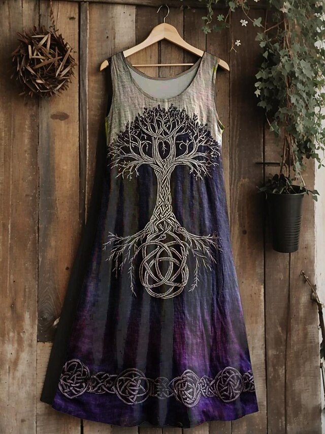 Women's Vintage Viking Celtic Knot  Gradient Art Midi Dress Sundress A Line Dress Vacation Casual Boho Wedding Party Going out Regular Fit Floral Graphic Leaf Sleeveless U Neck 9