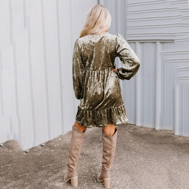 More information about Women's Mini Dress Velvet Dress Cocktail Dress Elegant Fashion present-day Outdoor Party Party Evening Wear Regular Fit Plain Long Sleeve V Neck Green Spring Autumn