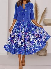 Women's Two Piece Dress Sets Midi Dress with Jacket Elegant A Line Dress Half Sleeve Casual Semi Formal Ombre Floral Print V Neck Date Red Sky Blue Green Regular Fit 3
