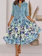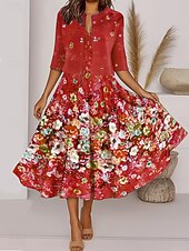 More information about Women's Two Piece Dress Sets Midi Dress with Jacket Elegant A Line Dress Half Sleeve Casual Semi Formal Ombre Floral Print V Neck Date Red Sky Blue Green Regular Fit